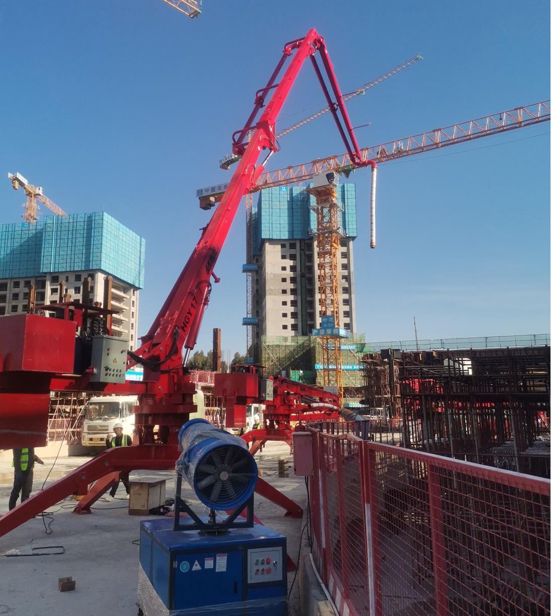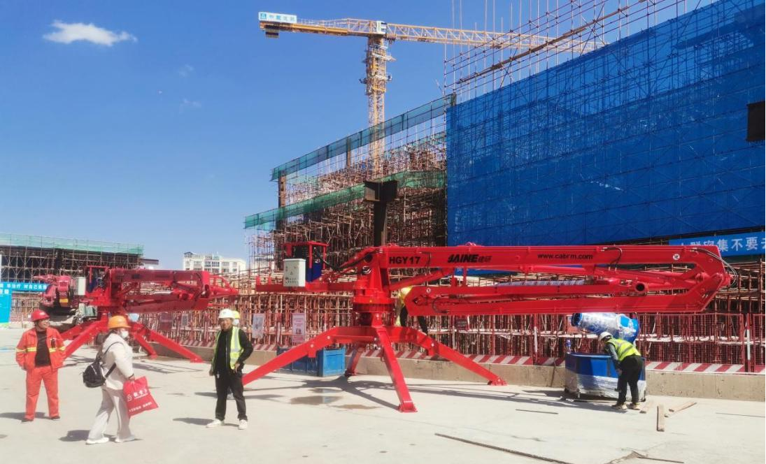 廊坊凱博建設(shè)機(jī)械科技有限公司研發(fā)的4臺HGY17移動式液壓混凝土布料機(jī)(JAINE)在昆明市綜合交通國際樞紐建設(shè)項(xiàng)目中亮相。