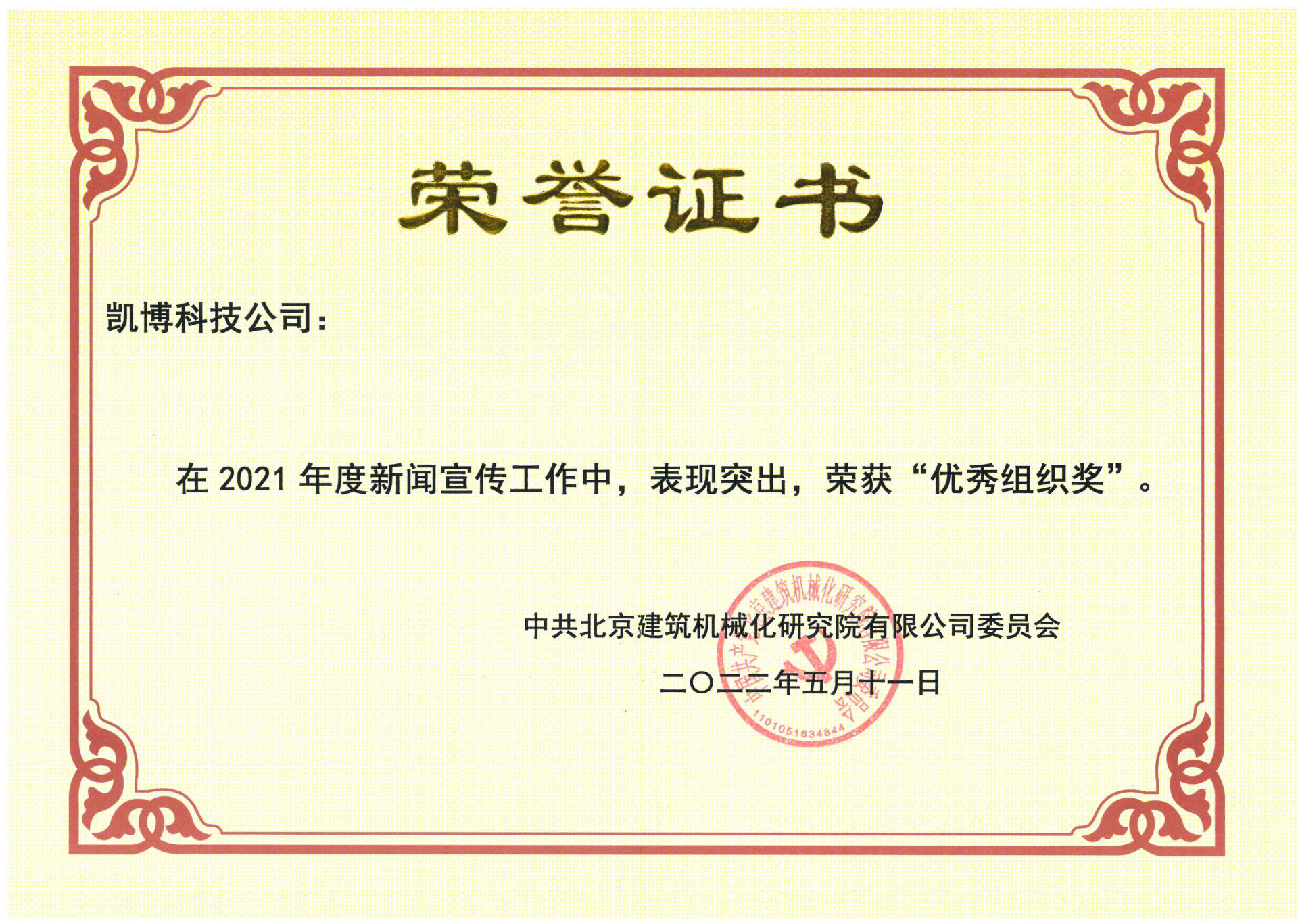 近日,廊坊凱博建設(shè)機(jī)械科技有限公司(以下簡(jiǎn)稱“凱博科技”)榮獲北京建筑機(jī)械化研究院有限公司“新聞宣傳優(yōu)秀組織獎(jiǎng)”。